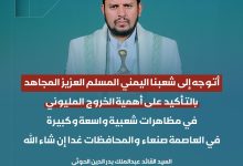 اللجنة المنظمة تدعو الشعب اليمني للمشاركة المليونية غدًا في مسيرات التضامن مع إيران