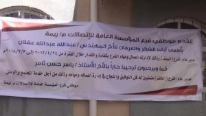 بدوره ثمن المدير الخلف لفرع الاتصالات بريمة أ: ياسر حسن ثامر دور قيادة المكتب السابقة والعاملين فيه في إنجاح سير العمل بفرع المؤسسة بمحافظة ريمة.