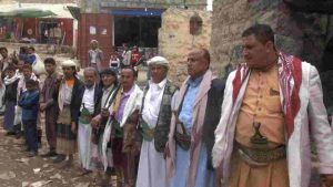 نظم مركز مديرية كسمة محافظة ريمة اليوم وقفة تنديدا واستنكارا لجرائم العدوان السعودي الأمريكي