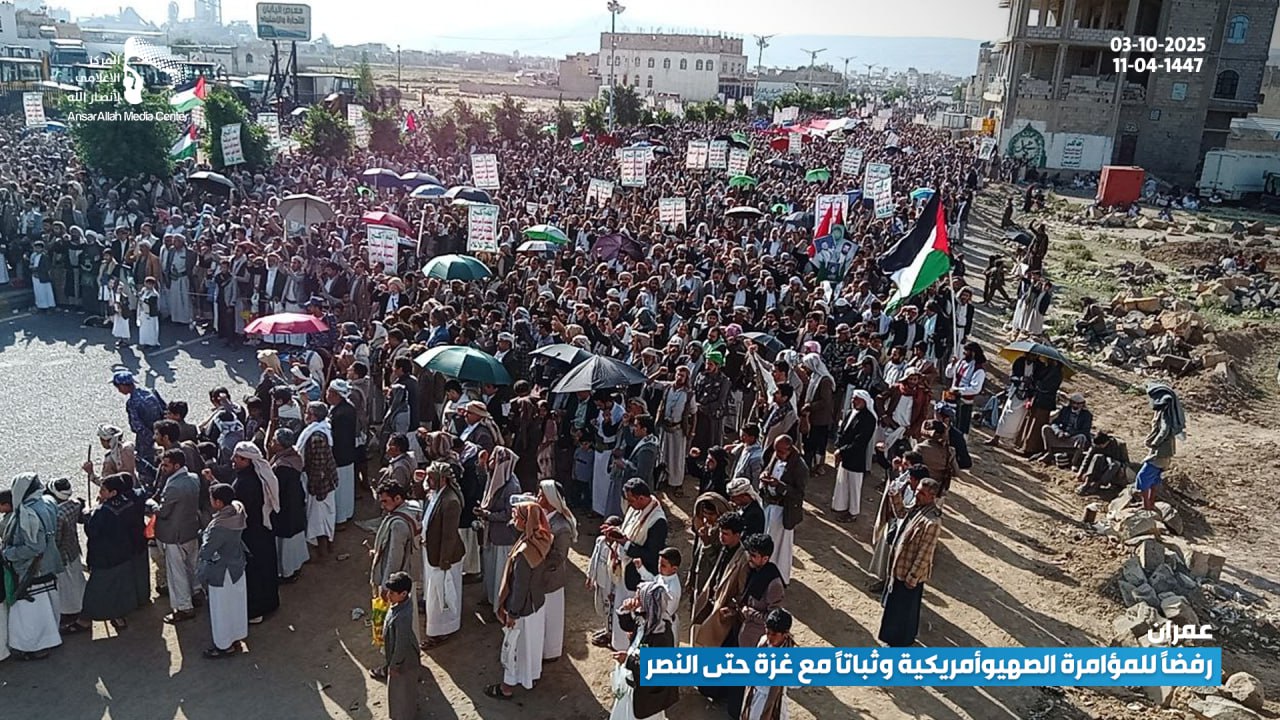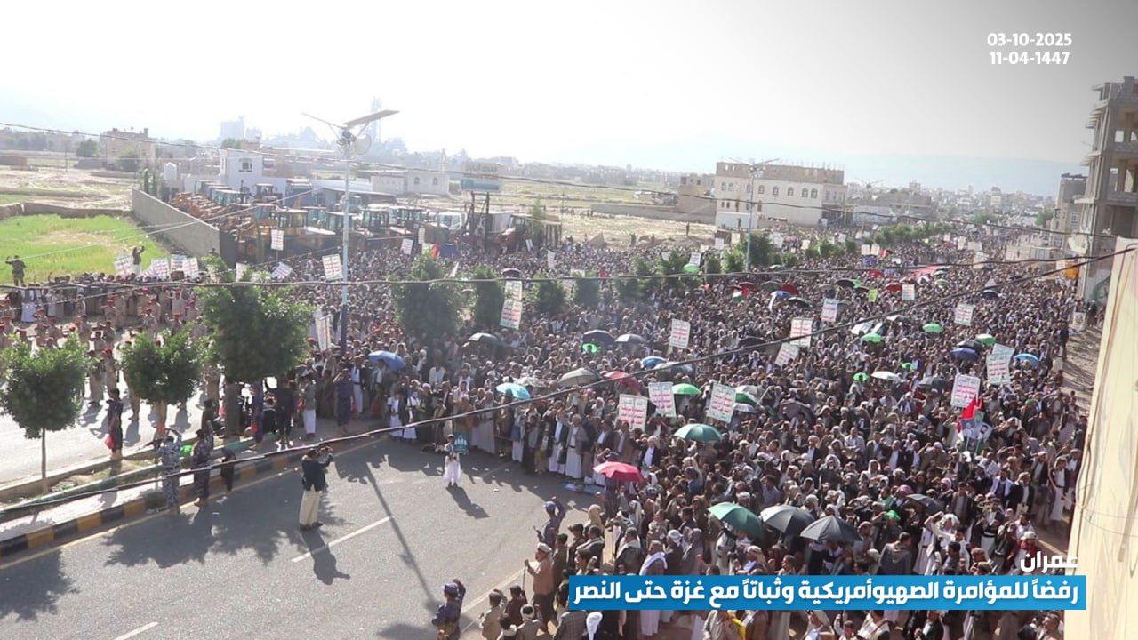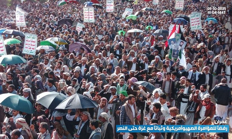 📷 صور | حشد الوفاء وجند الفتح يؤكدون الثبات والجاهزية… حشود غفيرة بمدينة #عمران في مسيرة “رفضاً للمؤامرة الصهيوأمريكية وثباتاً مع غزة حتى النصر” 11-04-1447 | 03-10-2025