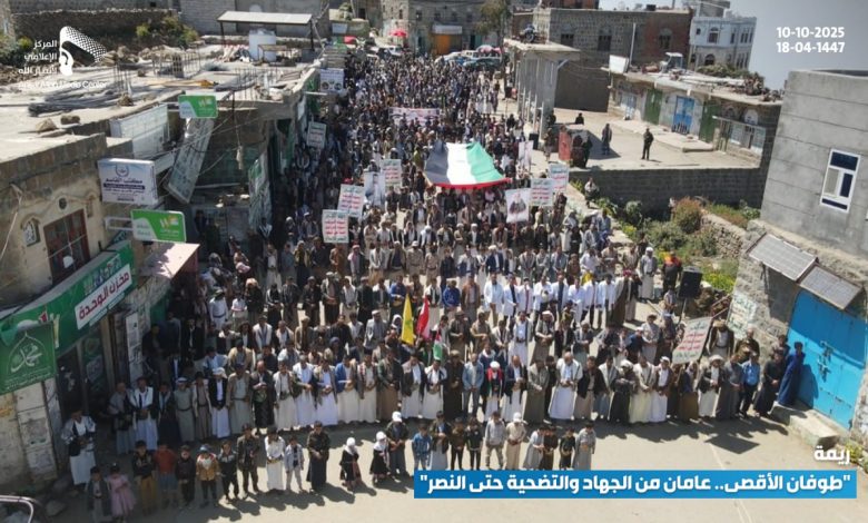 وجدد أبناء ريمة التأكيد على مواصلة الصمود والتضحية في مواجهة الطغاة والمستكبرين من الأمريكان والصهاينة وأعوانهم من المنافقين، ومناصرة للمستضعفين من أبناء غزة، وعدم التراجع عن ذلك حتى تحقيق النصر الكامل.