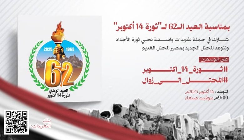 انطلاق حملة تغريدات مساء اليوم إحياءً لذكرى ثورة 14 أكتوبر