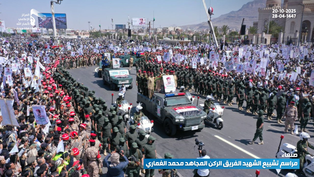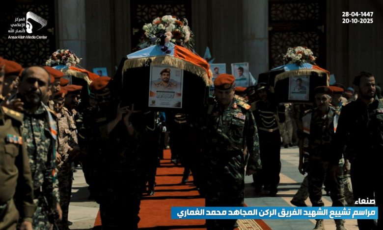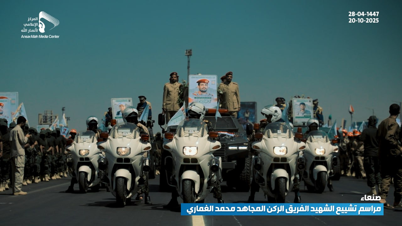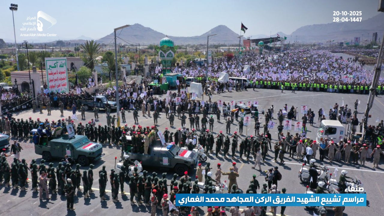 مهابة تفاصيل الوفاء لقائد الانتصارات… مراسم تشييع الشهيد الفريق الركن المجاهد محمد الغماري بحضور رسمي وشعبي كبير في العاصمة #صنعاء 28-04-1447 | 20-10-2025