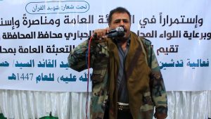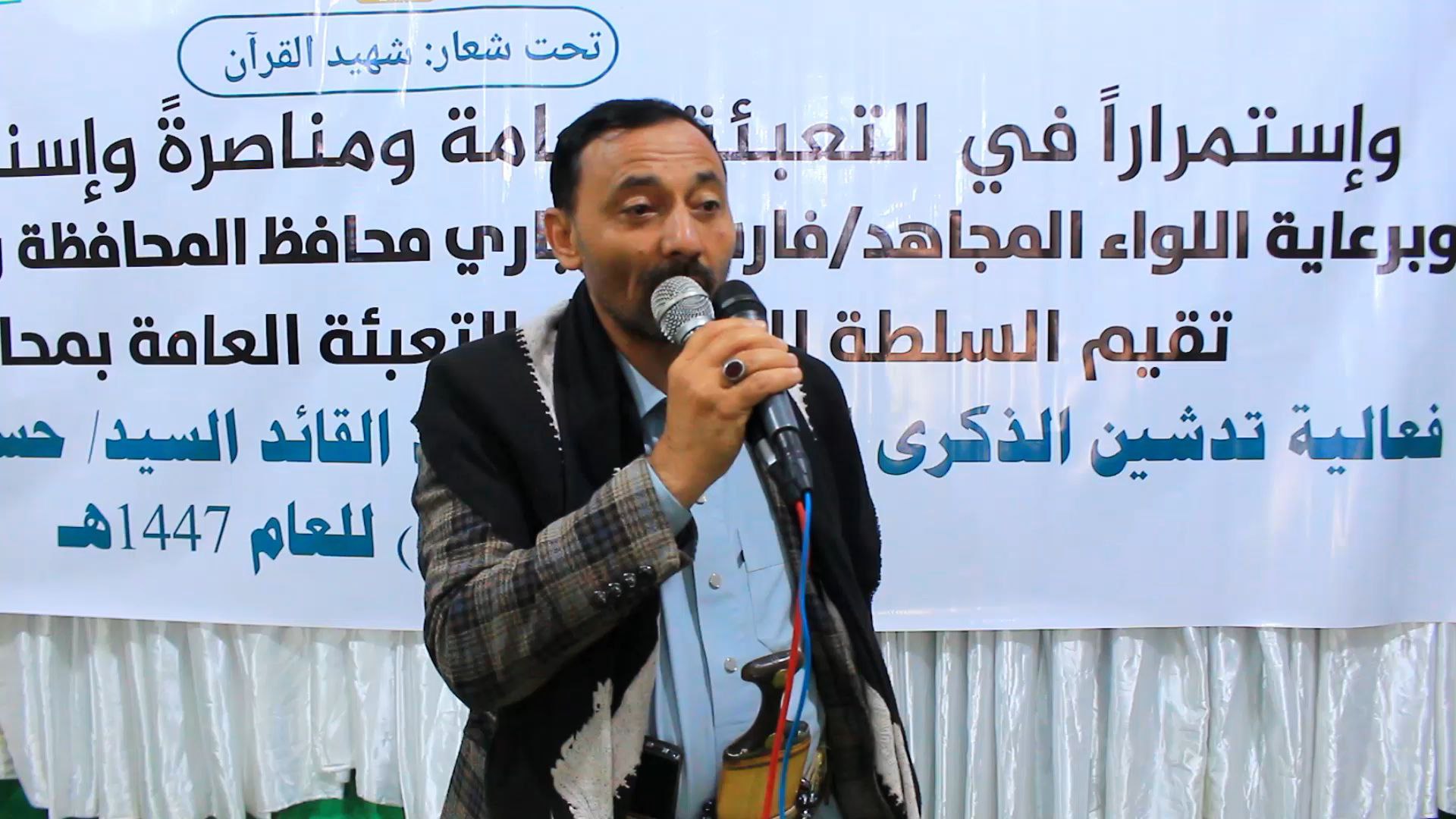 وفي الفعالية الخطابية التي تأتي تدشينًا لفعاليات إحياء الذكرى السنوية لشهيد القرآن السيد حسين بدر الدين الحوثي واستمرارًا في جهود التعبئة العامة ومناصرة قضايا الأمة. أكد وكيل المحافظة حافظ الواحدي أهمية إحياء هذه الذكرى لاستلهام معاني الصمود والتضحية والبذل والعطاء، وتعزيز الهوية الإيمانية والثقافة القرآنية.