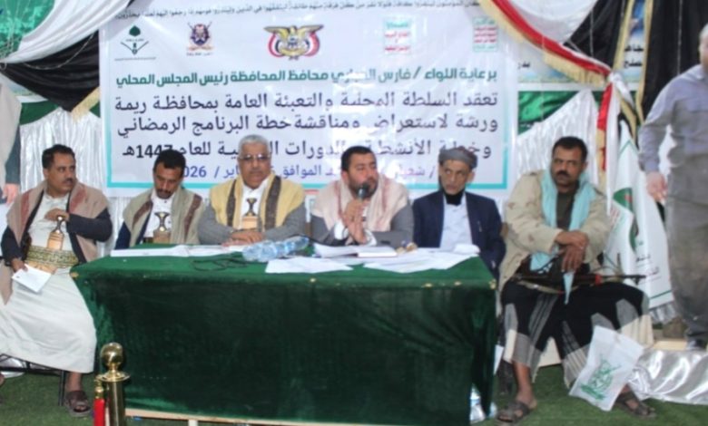 ناقش لقاء موسع للسلطة المحلية والتعبئة العامة بمحافظة ريمة اليوم، الجوانب المتصلة بالتهيئة والاستعداد للبرنامج الرمضاني والدورات الصيفية للعام 1447ه.