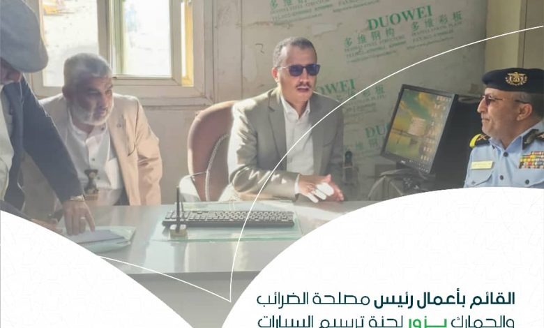 القائم بأعمال رئيس مصلحة الضرائب والجمارك يزور لجنة ترسيم السيارات في جامع الشعب والإدارة العامة للمرور