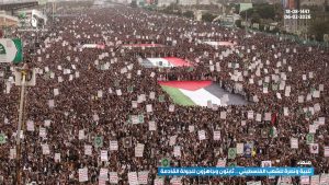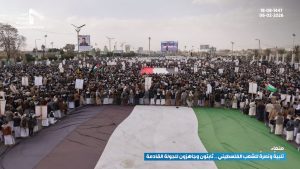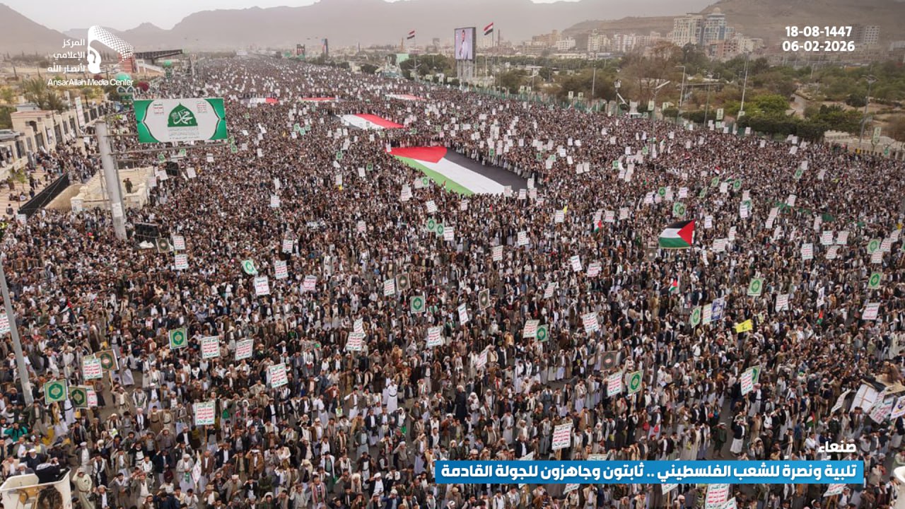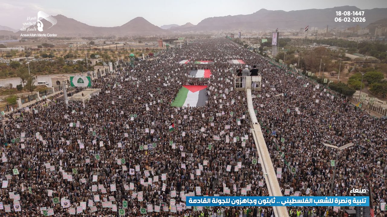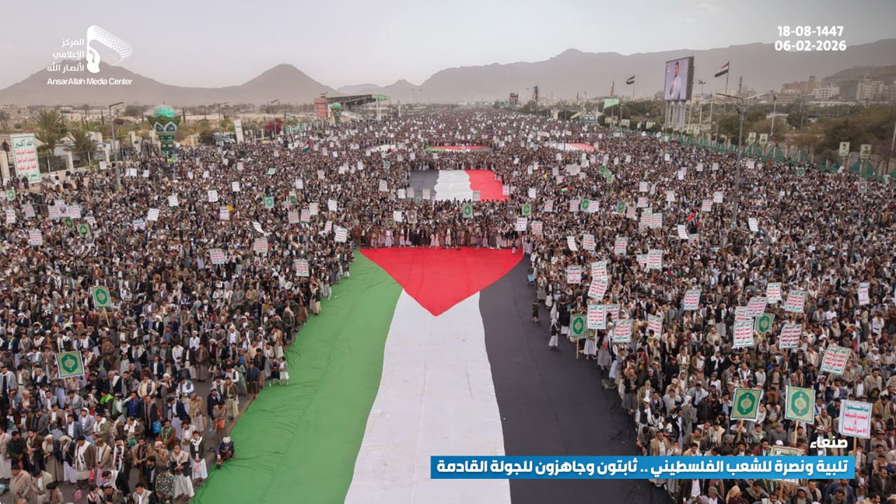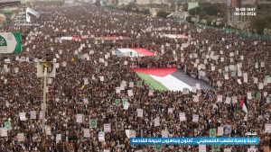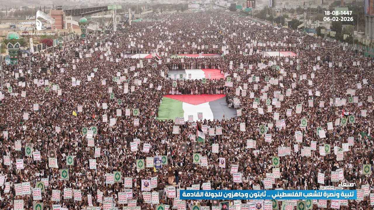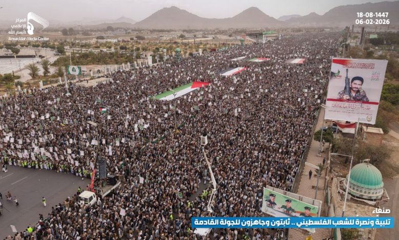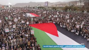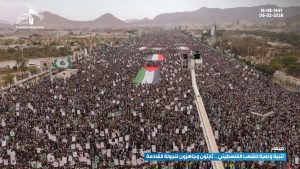 مسيرة مليونية بالعاصمة صنعاء تحت شعار “تلبية ونصرة للشعب الفلسطيني.. ثابتون وجاهزون للجولة القادمة”