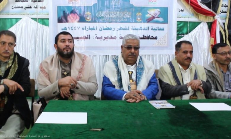 نظمت السلطة المحلية والتعبئة العامة بمديرية الجبين في محافظة ريمة اليوم، فعالية خطابية للتهيئة للبرنامج الرمضاني، استعداداً واستقبالاً لشهر رمضان المبارك .