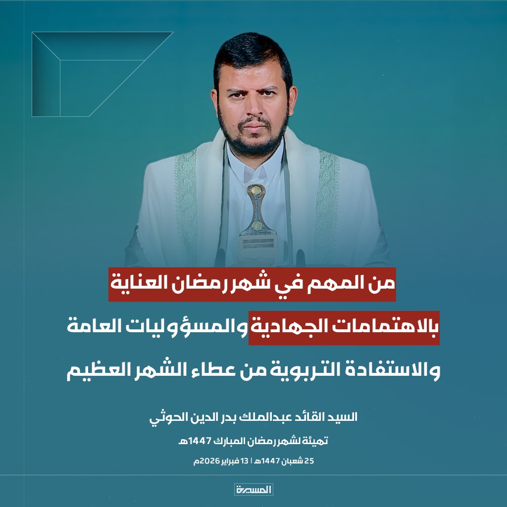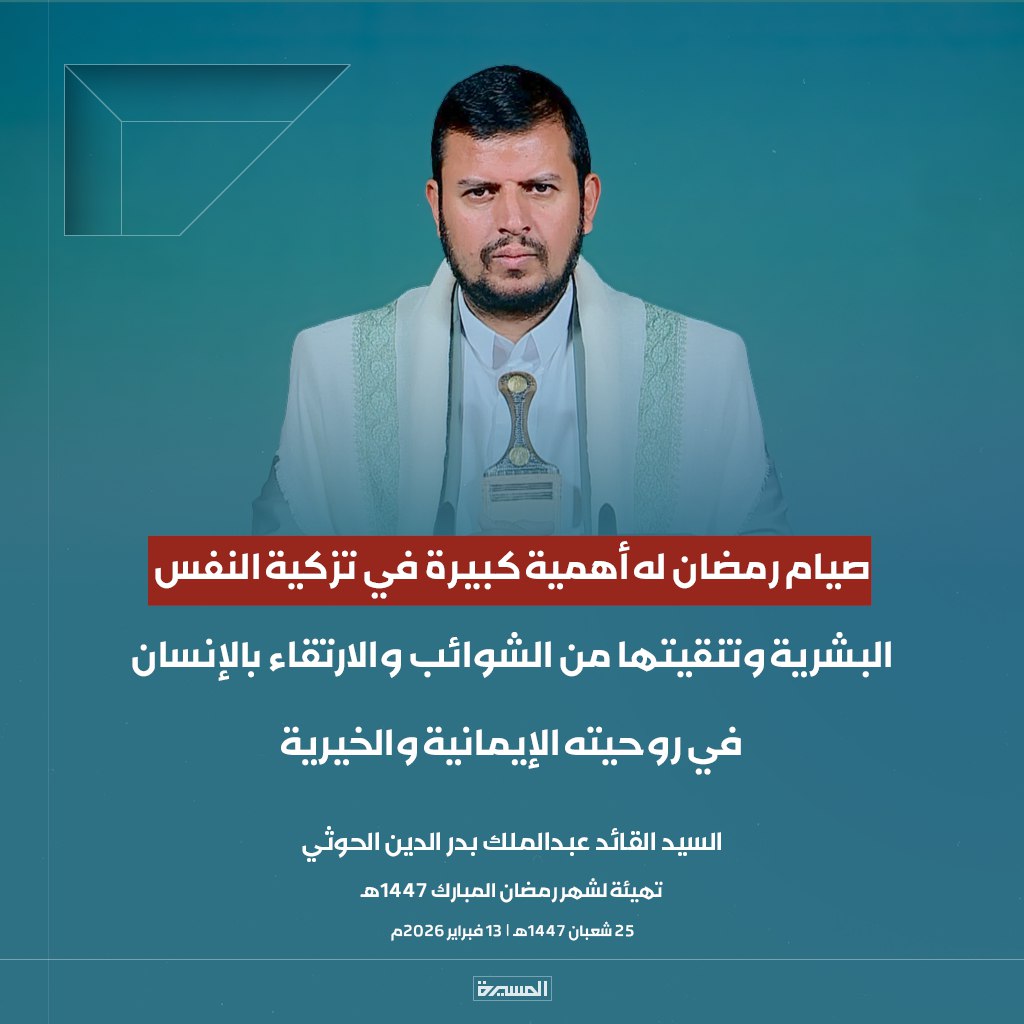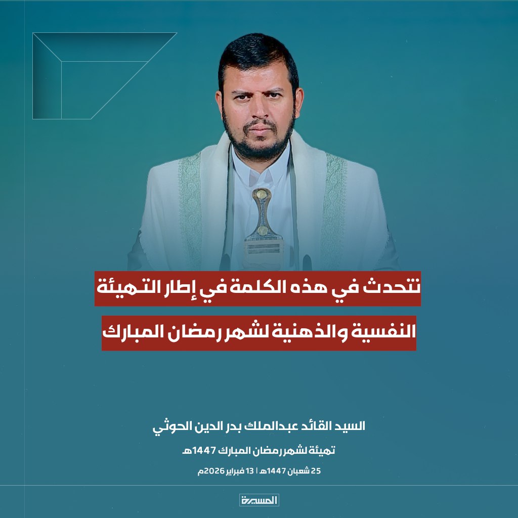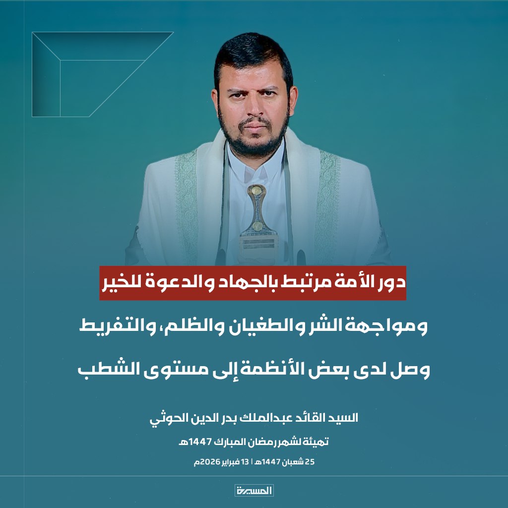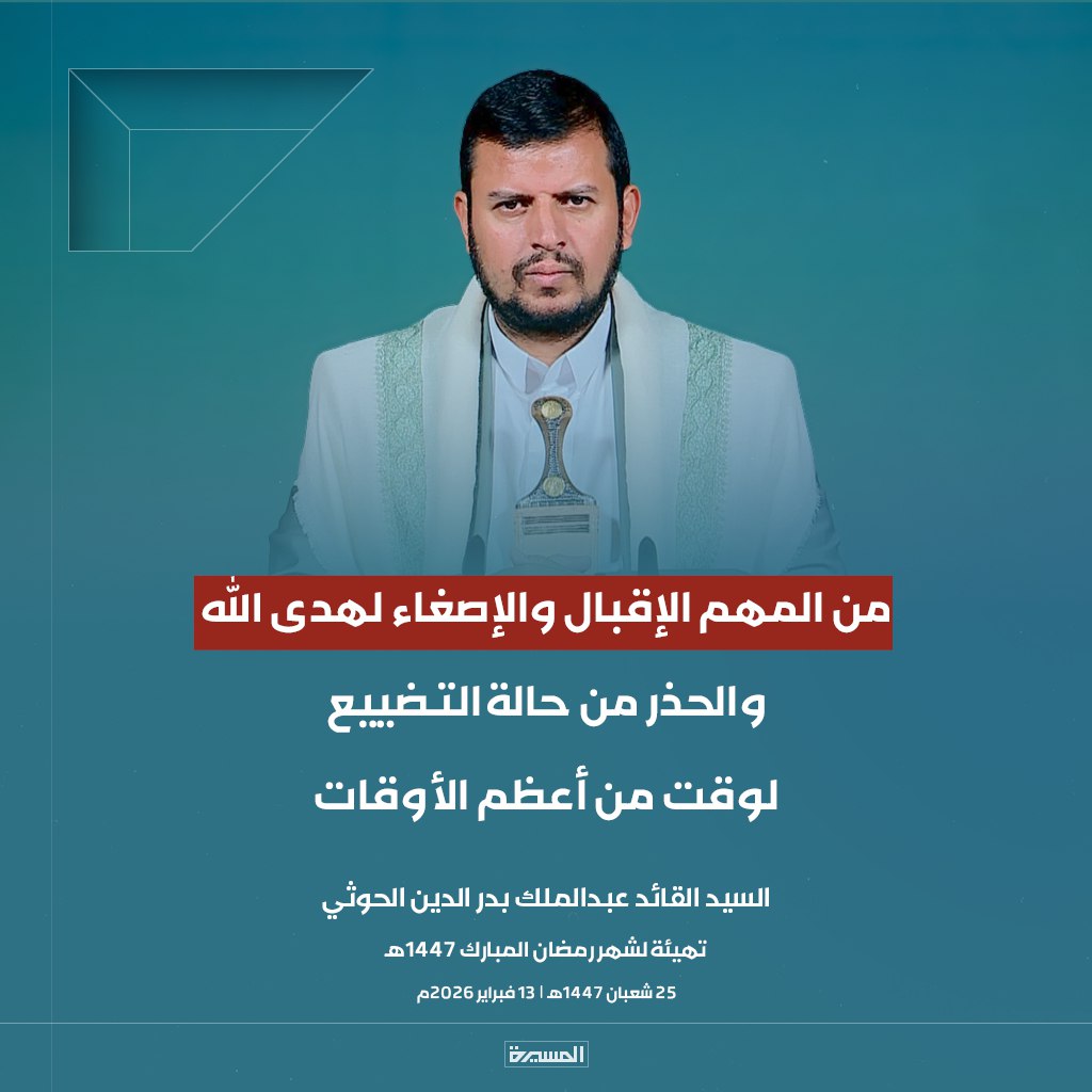 الرئيسية/الأخبار/بالصور ابرز مقتطفات خطاب السيد القائد تهيئة لشهر رمضان المبارك الأخبارالأخبار المحليةالصورخطابات قائد الثورةمكتبة الوسائطمنوعات بالصور ابرز مقتطفات خطاب السيد القائد تهيئة لشهر رمضان المبارك 13 فبراير، 2026 17:38 فيسبوك تويتر 13 فبراير، 2026 17:38 فيسبوك تويتر اظهر المزيد فيسبوك تويتر