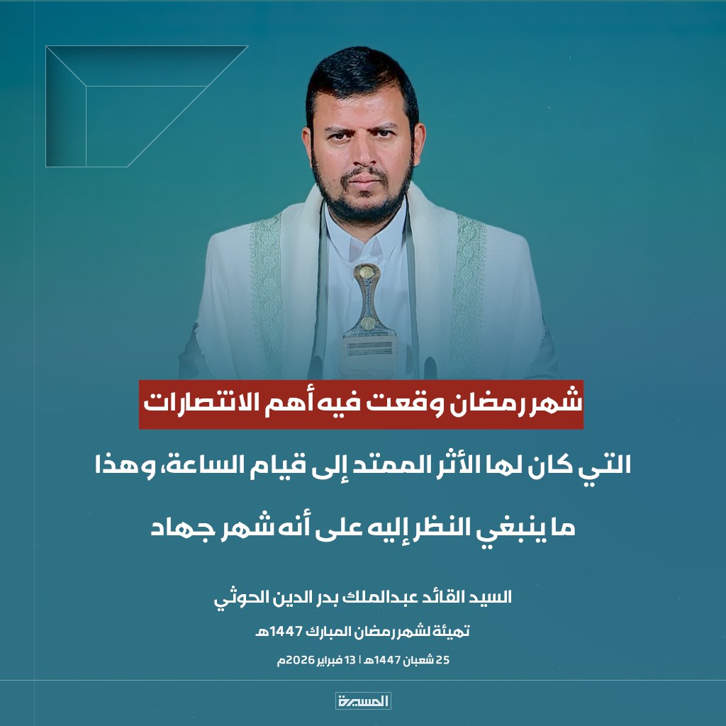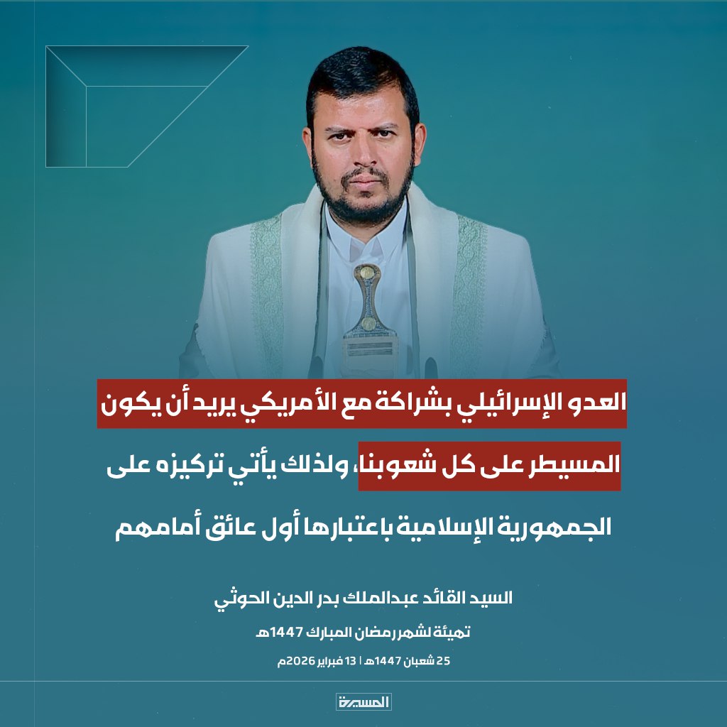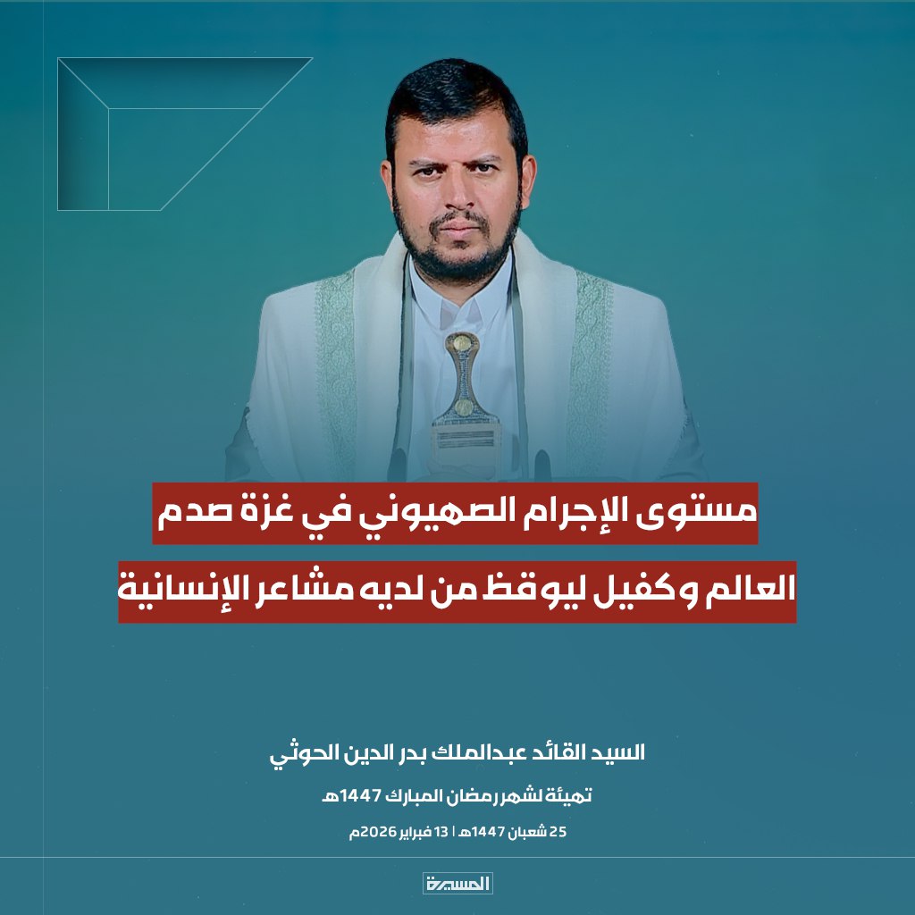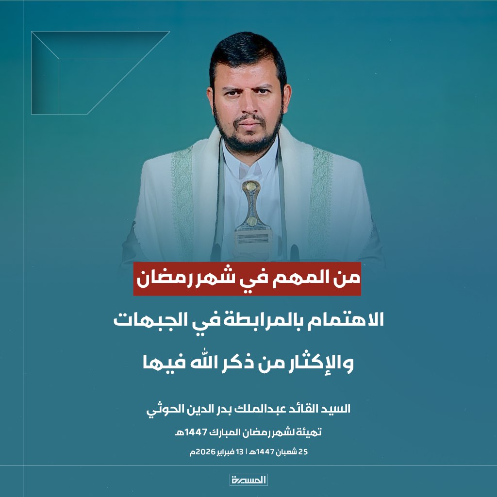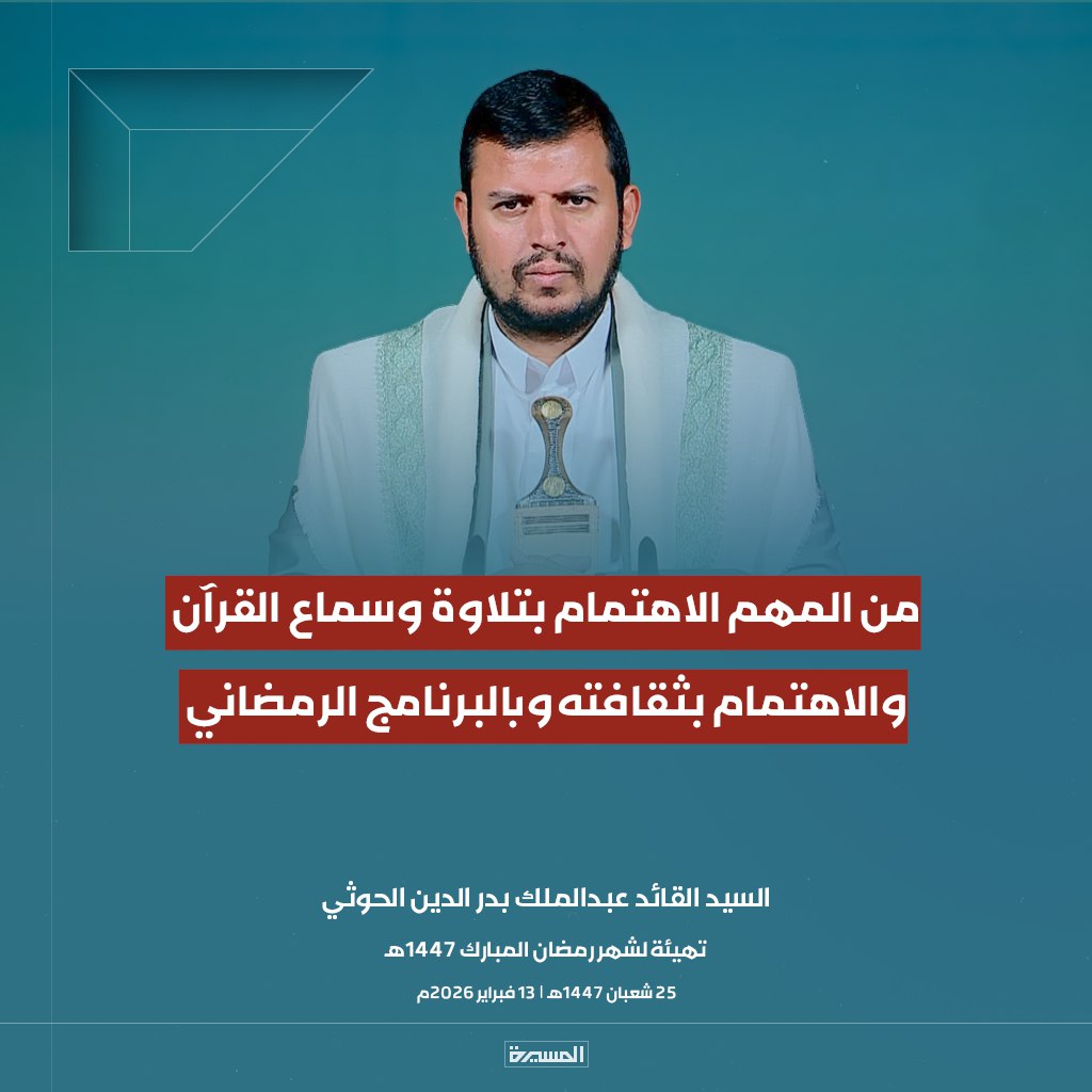 الرئيسية/الأخبار/بالصور ابرز مقتطفات خطاب السيد القائد تهيئة لشهر رمضان المبارك الأخبارالأخبار المحليةالصورخطابات قائد الثورةمكتبة الوسائطمنوعات بالصور ابرز مقتطفات خطاب السيد القائد تهيئة لشهر رمضان المبارك 13 فبراير، 2026 17:38 فيسبوك تويتر 13 فبراير، 2026 17:38 فيسبوك تويتر اظهر المزيد فيسبوك تويتر