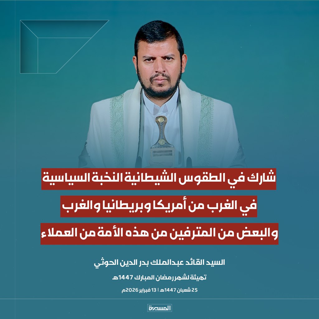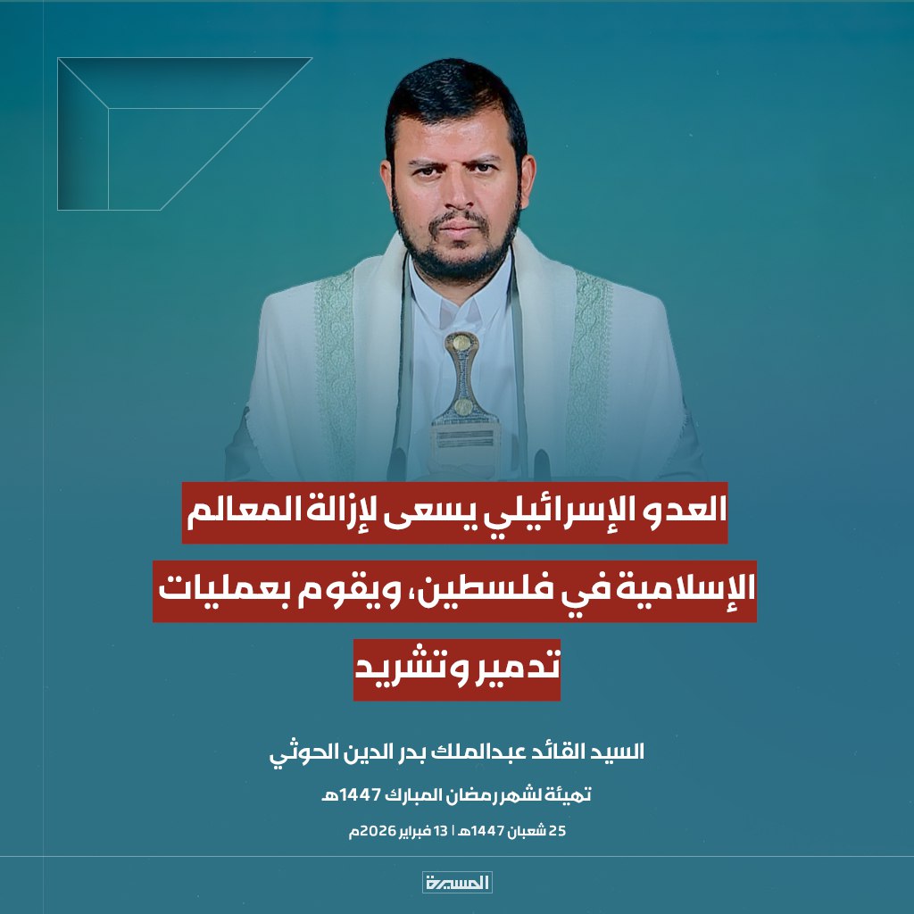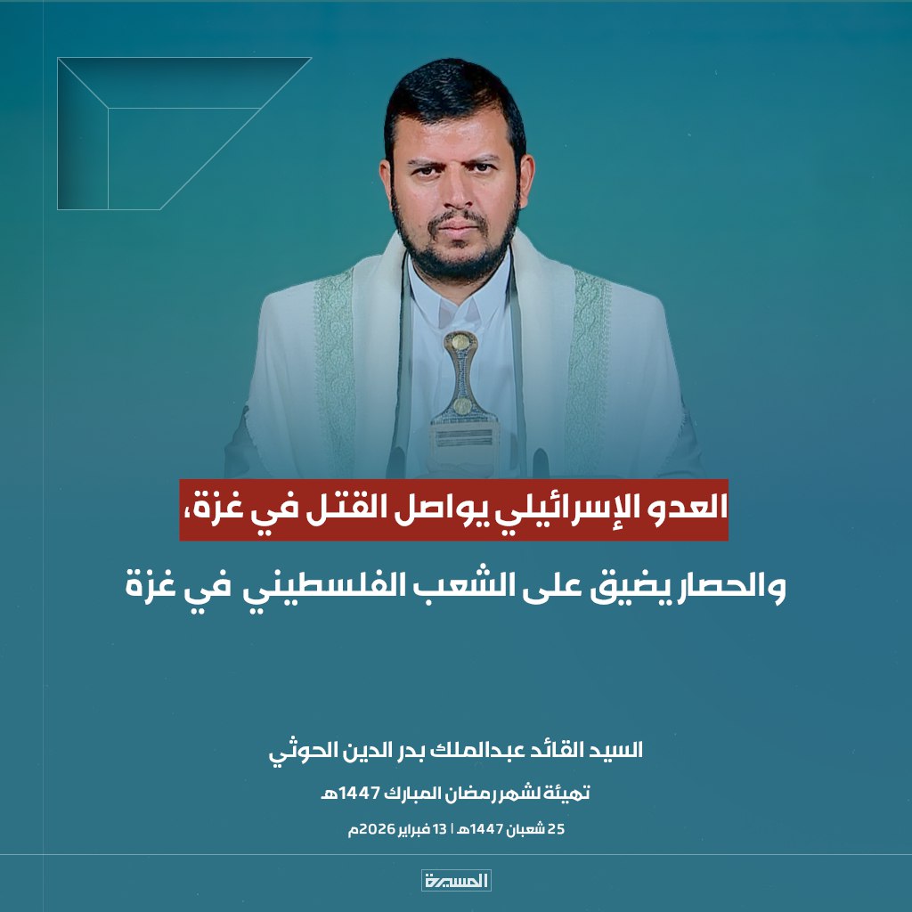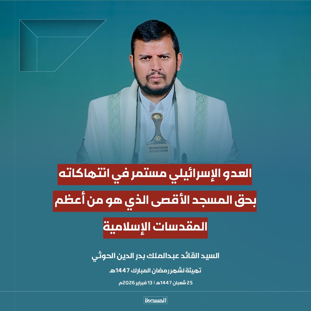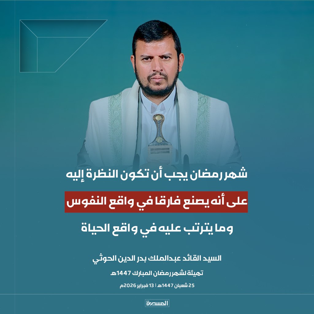 الرئيسية/الأخبار/بالصور ابرز مقتطفات خطاب السيد القائد تهيئة لشهر رمضان المبارك الأخبارالأخبار المحليةالصورخطابات قائد الثورةمكتبة الوسائطمنوعات بالصور ابرز مقتطفات خطاب السيد القائد تهيئة لشهر رمضان المبارك 13 فبراير، 2026 17:38 فيسبوك تويتر 13 فبراير، 2026 17:38 فيسبوك تويتر اظهر المزيد فيسبوك تويتر
