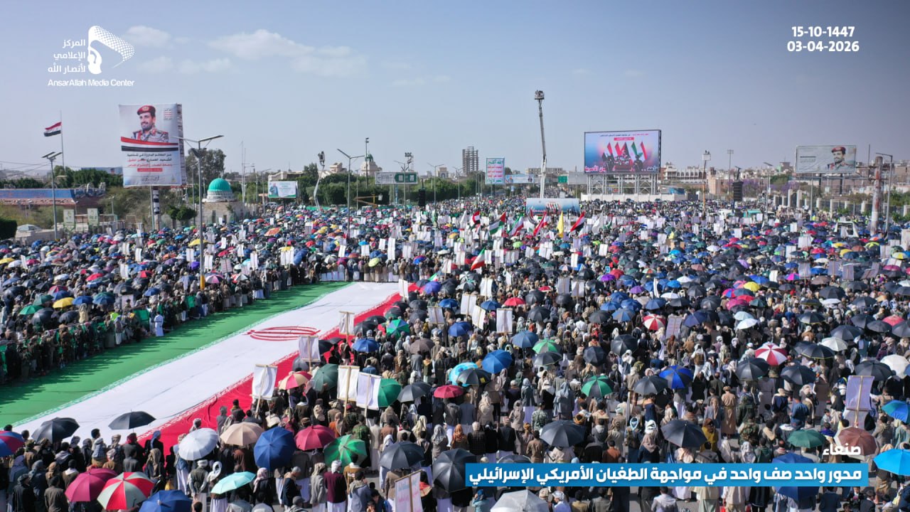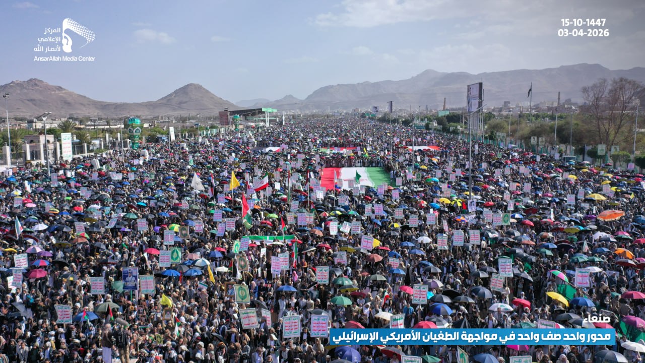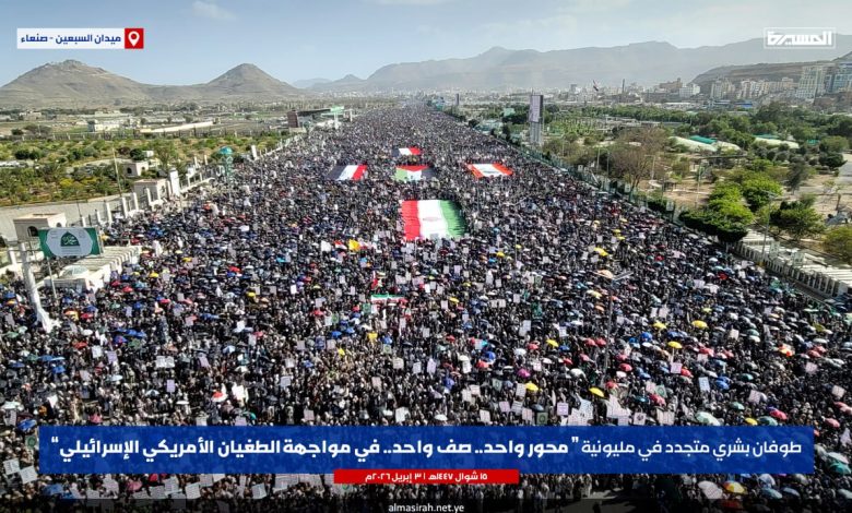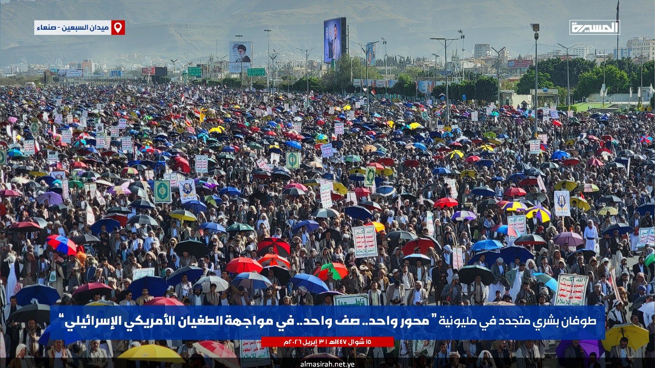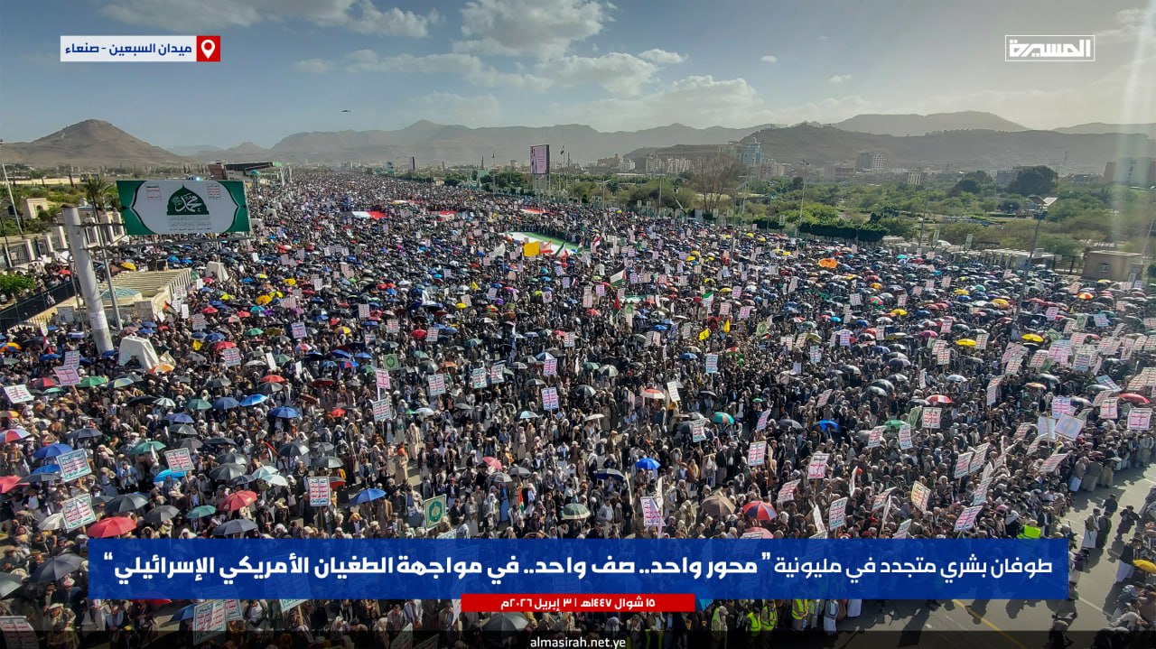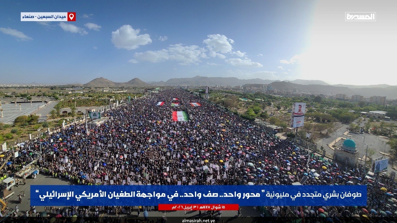 الرئيسية/الأخبار/بالصور | طوفان بشري في مليونية (محور واحد صف واحد في مواجهة الطغيان الأمريكي الإسرائيلي) بـ ميدان السبعين في العاصمة صنعاء الأخبارالأخبار المحليةالصورمحلياتمكتبة الوسائط بالصور | طوفان بشري في مليونية (محور واحد صف واحد في مواجهة الطغيان الأمريكي الإسرائيلي) بـ ميدان السبعين في العاصمة صنعاء 3 أبريل، 2026 16:23 فيسبوك تويتر 3 أبريل، 2026 16:23 فيسبوك تويتر اظهر المزيد فيسبوك تويتر
