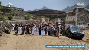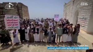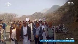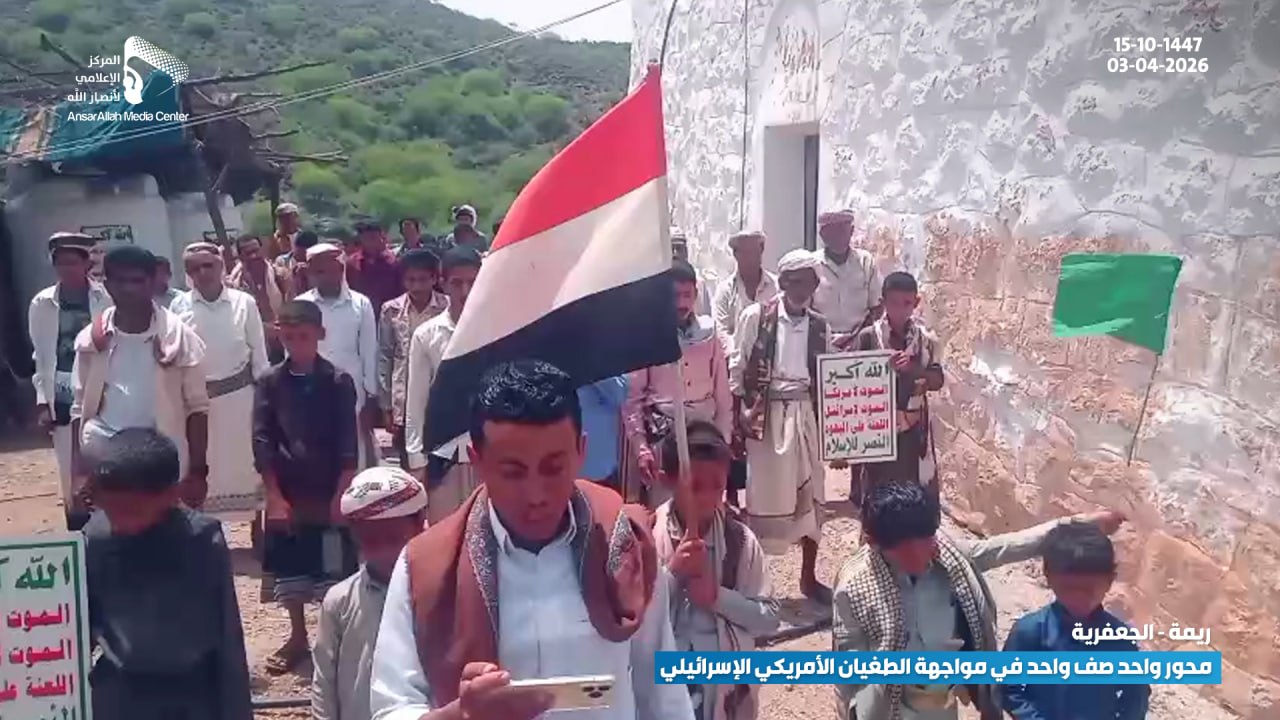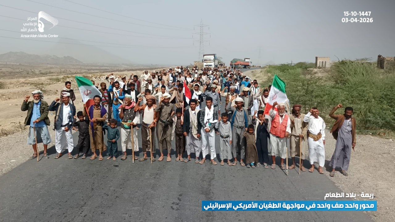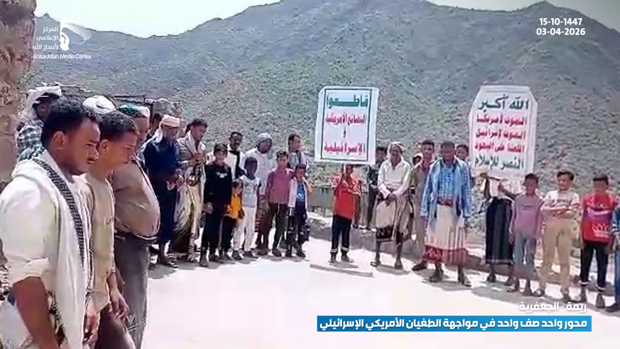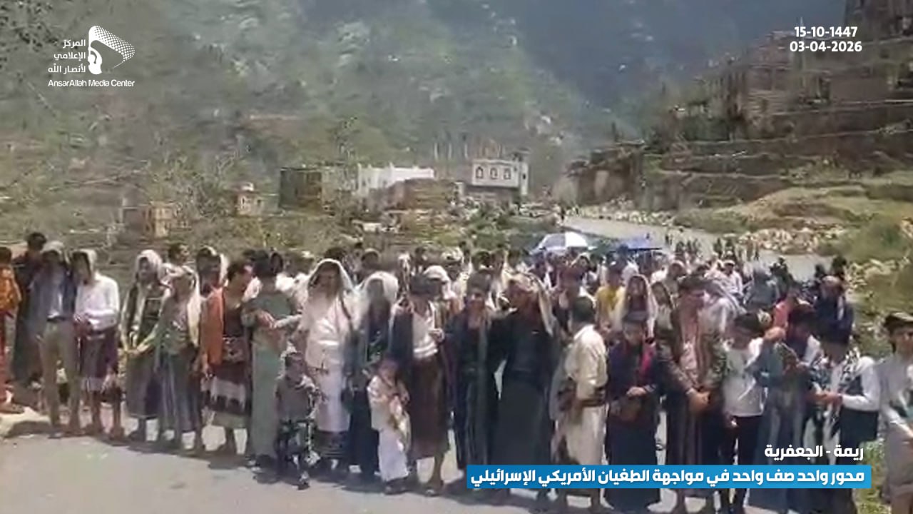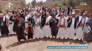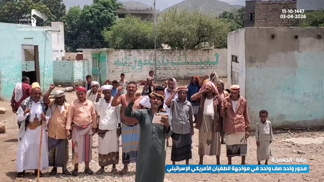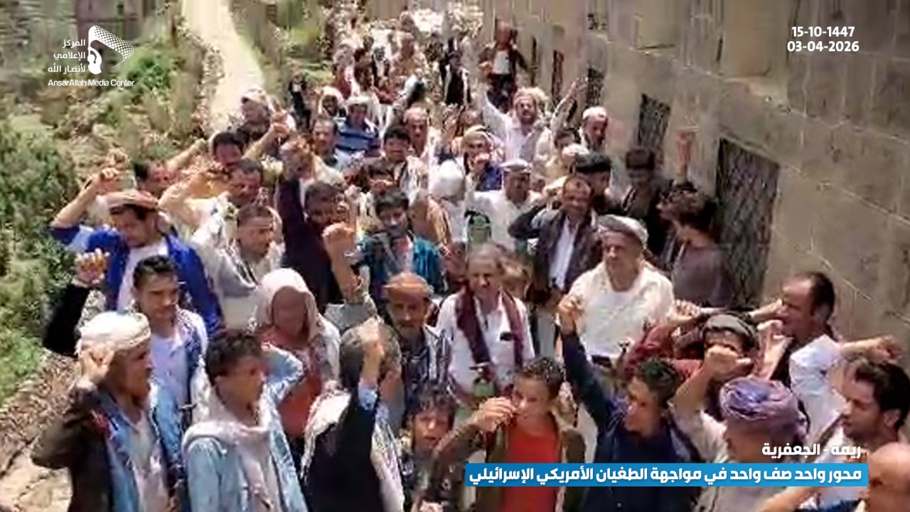 وأكد بيان صادر عن مسيرات ريمة، الوقوف صفا واحدا كالبنيان المرصوص مع محور الجهاد والمقاومة، في مواجهة محور الكفر والمخطط الصهيوني اليهودي المسمى بـ “إسرائيل الكبرى” الذي يستهدف كل الأمة بدون استثناء.