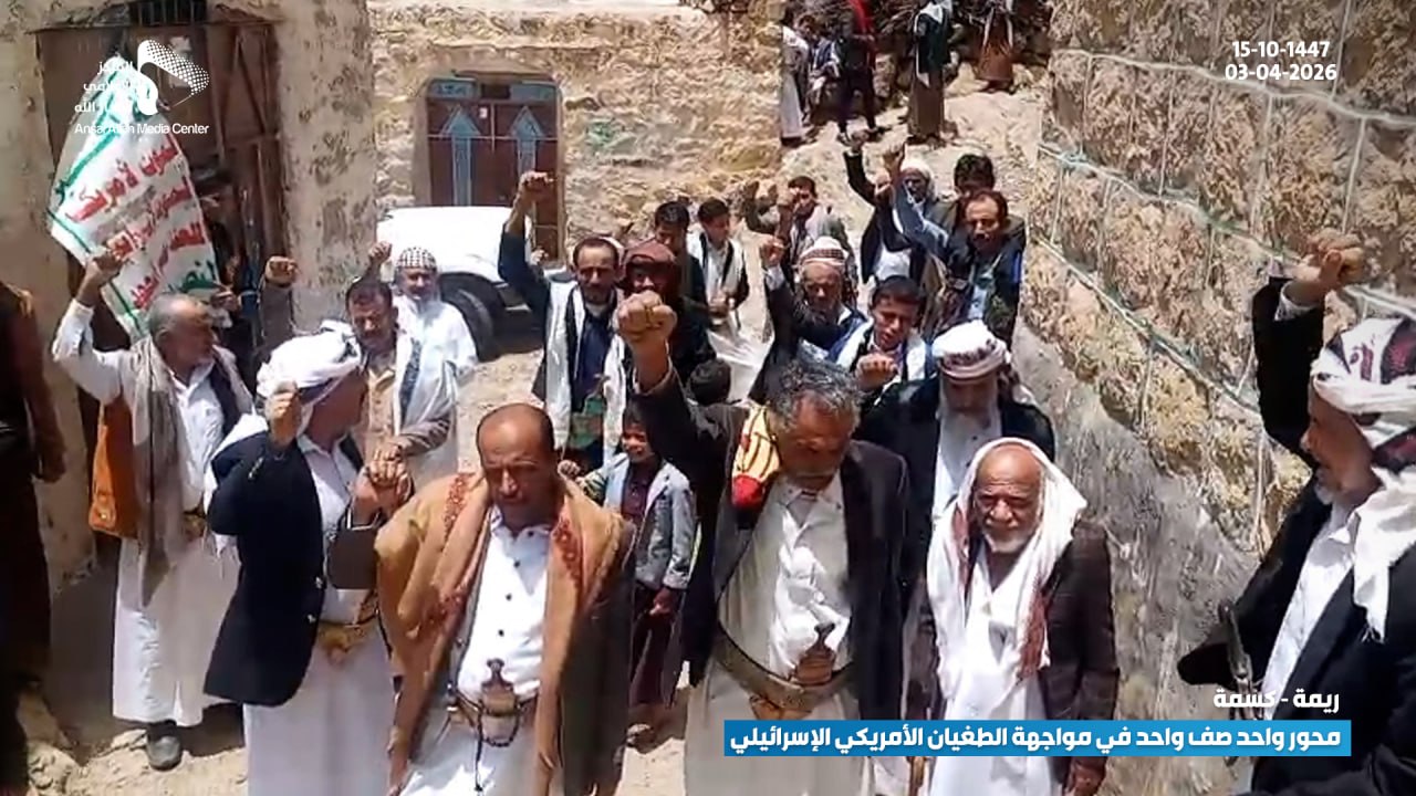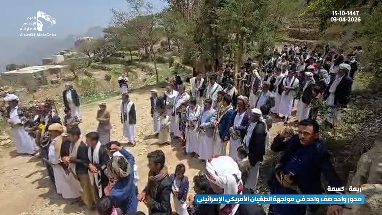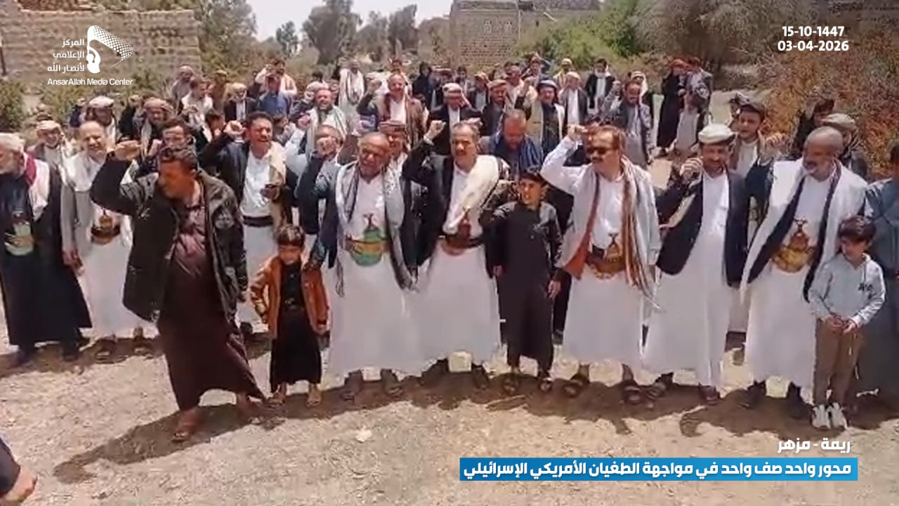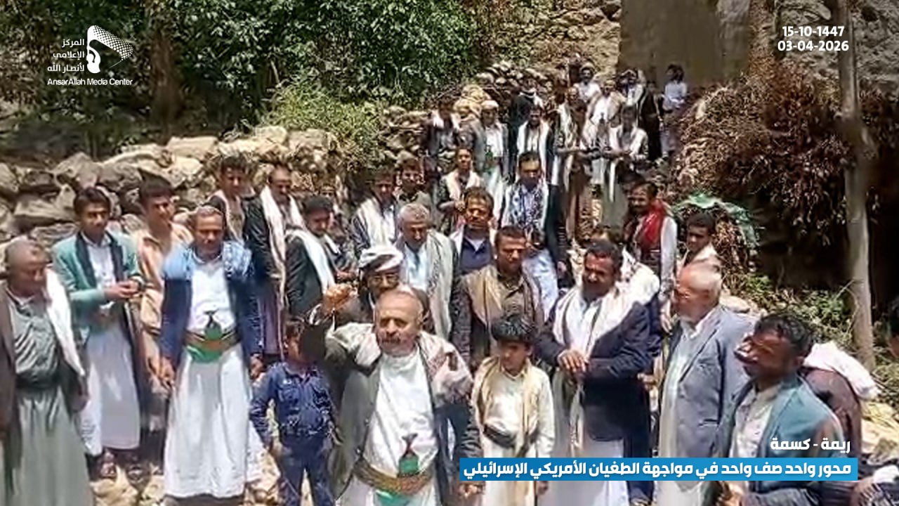 وجدد أبناء ريمة التفويض المطلق لقائد الثورة السيد عبدالملك بدر الدين الحوثي، والتأكيد على الجهوزية والاستعداد الكامل لتنفيذ توجيهاته في مواجهة العدو الصهيوني الأمريكي وأذنابهم من العملاء والمنافقين.