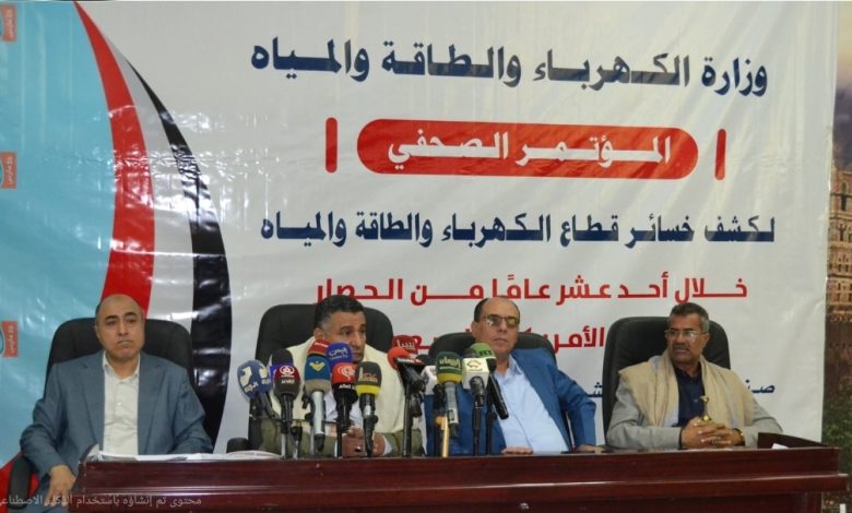 وفي المؤتمر الصحفي، كشف نائب وزير الكهرباء والطاقة والمياه عادل بادر، عن حجم الخسائر والأضرار الناجمة عن العدوان بقطاعي الكهرباء والمياه في 11 عامًا والتي بلغت 15 تريليون و94 مليارًا و202 مليون و228 ألف ريال، ما يعادل 28 مليار دولار.