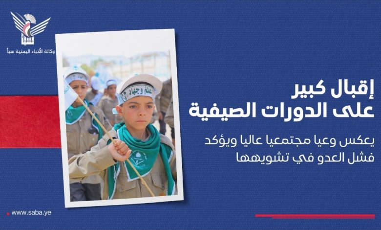 ويعكس الإقبال الواسع على الدورات الصيفية مستوى الوعي الكبير الذي يحمله أبناء الشعب اليمني، رغم حملات التشويه المستمرة التي يتبناها العدو ومرتزقته وأبواقهم المأجورة تجاه هذه الدورات والتي تكشف مدى انزعاجهم من هذه الأنشطة التي تسهم في إفشال مؤامراتهم ومساعيهم الخبيثة لإبعاد الأمة عن دينها ونهجها الايماني القويم الذي يمثل مصدر قوتها وعزتها.