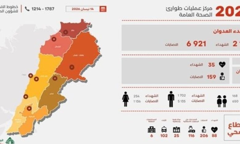 وزارة الصحة اللبنانية:ارتفاع حصيلة ضحايا العدوان الإسرائيلي على لبنان إلى 2124 شهيداً و6921 جريحاً