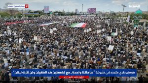 شهدت العاصمة صنعاء اليوم، طوفاناً بشرياً في مليونية “ساحاتنا واحدة.. مع فلسطين ضد الطغيان ولن نترك لبنان”، تأكيدا على الموقف الثابت في مواجهة مخطط العدو الصهيوني، ونصرة الأشقاء في لبنان ومجاهدي حزب الله.