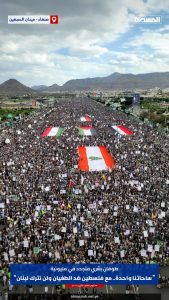 مليونية حاشدة في صنعاء تؤكد ثبات الموقف اليمني في دعم فلسطين ولبنان ووحدة الساحات