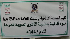 ريمة: ندوة ثقافية للوحدة الثقافية إحياءً للذكرى السنوية للصرخة