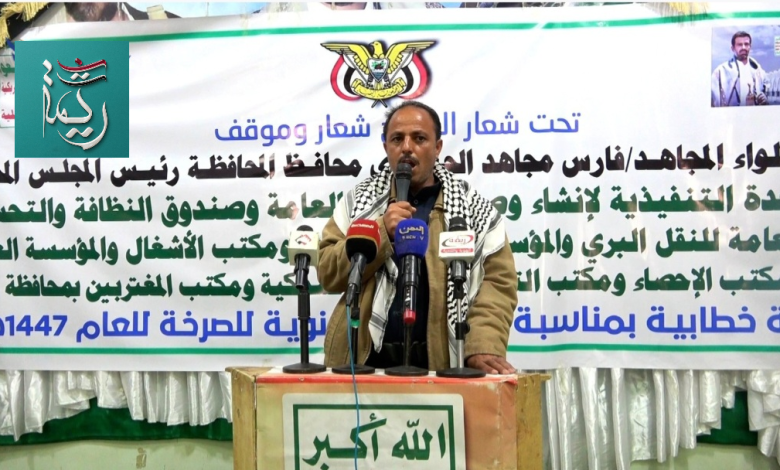نظّمت فروع ومكاتب الوحدة التنفيذية لصيانة الطرق، وصندوق النظافة والتحسين، والهيئة العامة للنقل والاتصالات، وقطاع التخطيط بمحافظة ريمة، اليوم، فعالية خطابية بمناسبة الذكرى السنوية للصرخة، تحت شعار “الصرخة.. سلاح وموقف”.